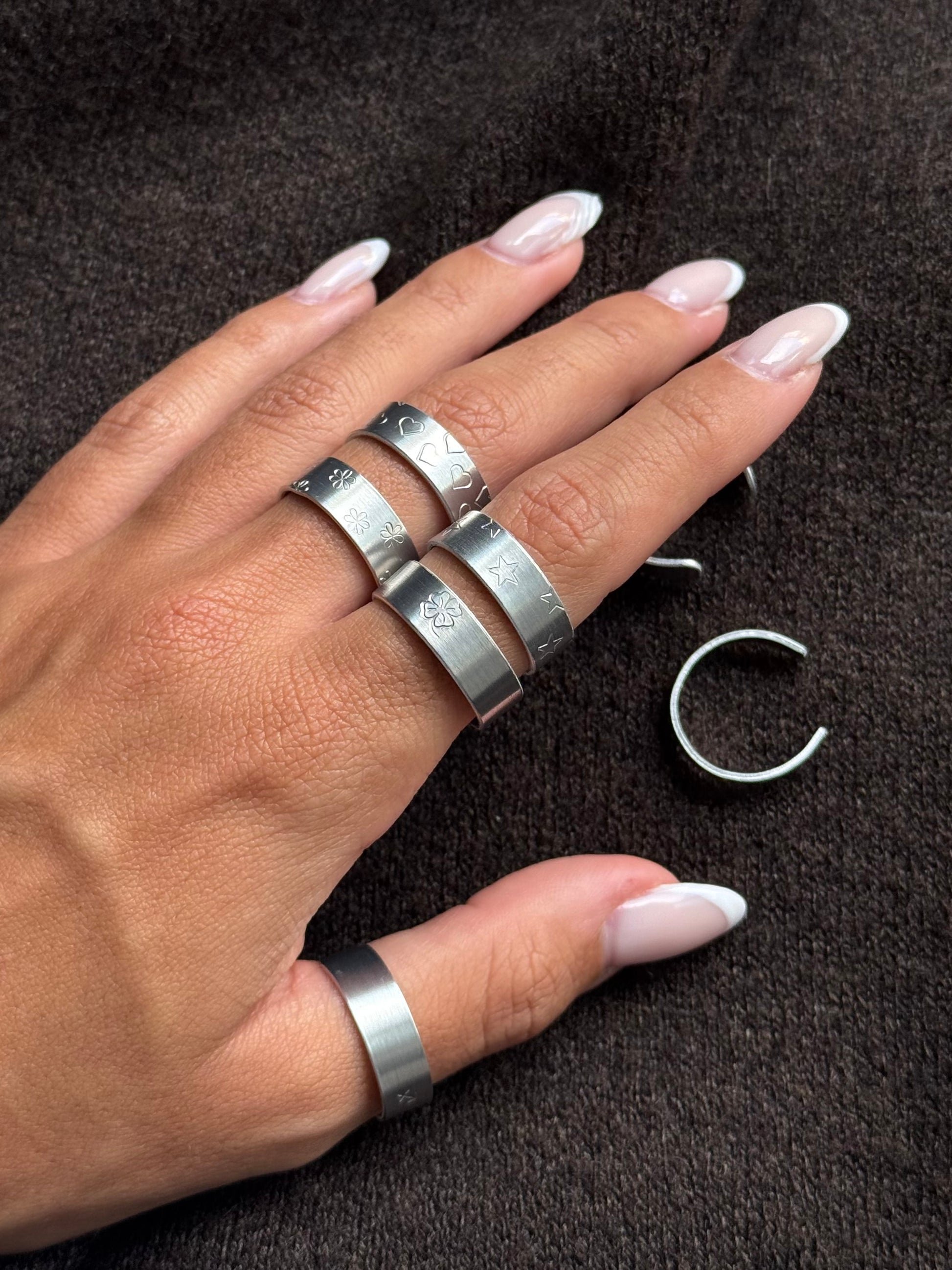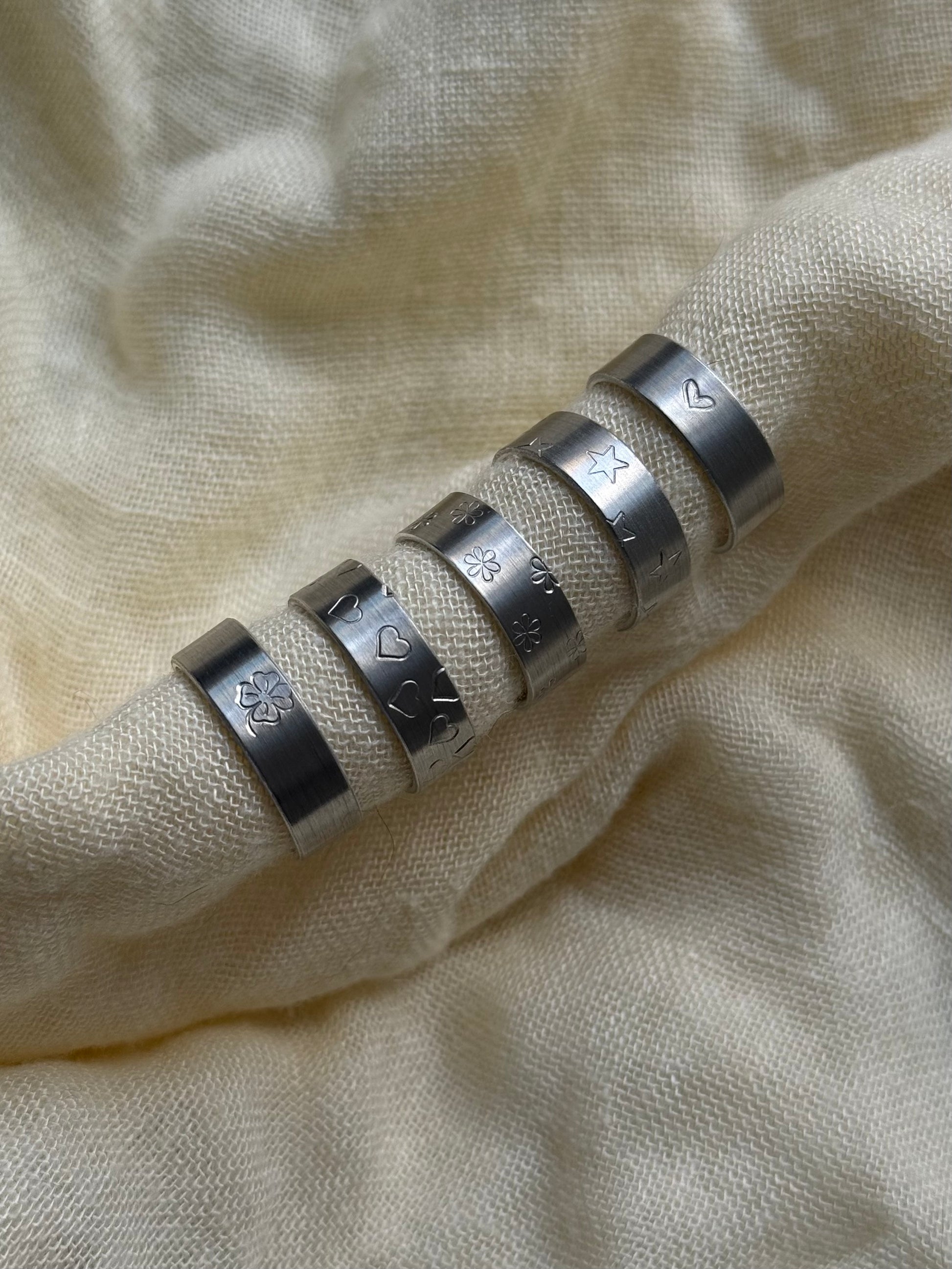✨ Parce qu’elles sont faites à la main, chaque pièce est unique : la position des symboles peut varier légèrement d’une bague à l’autre, ce qui leur confère tout leur charme artisanal et authentique.