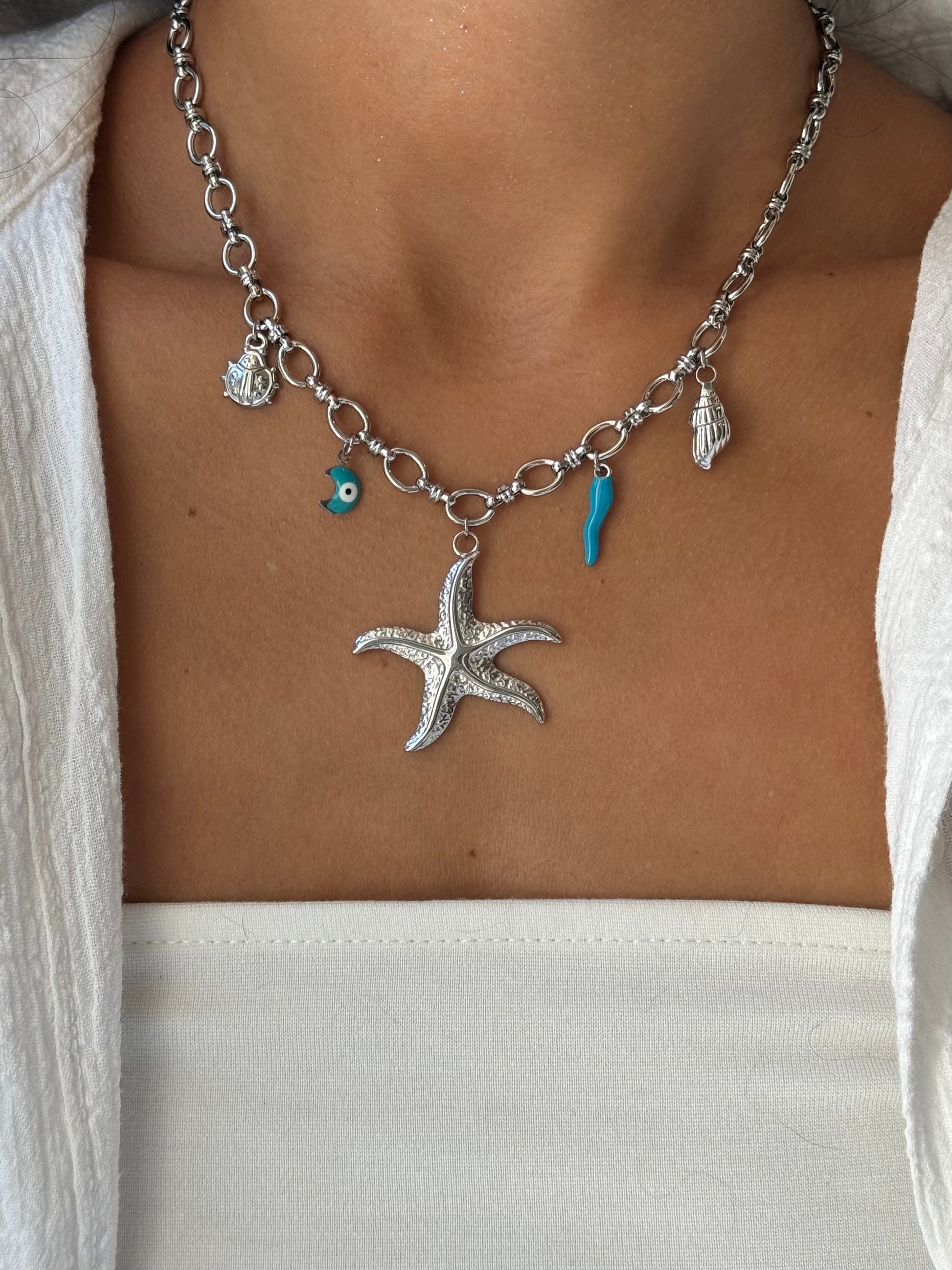 Ajoutez une touche symbolique et tendance à votre look avec ce collier orné de charms. Léger, délicat et facile à porter seul ou en accumulation, il apporte une dose de caractère à toutes vos tenues ✨