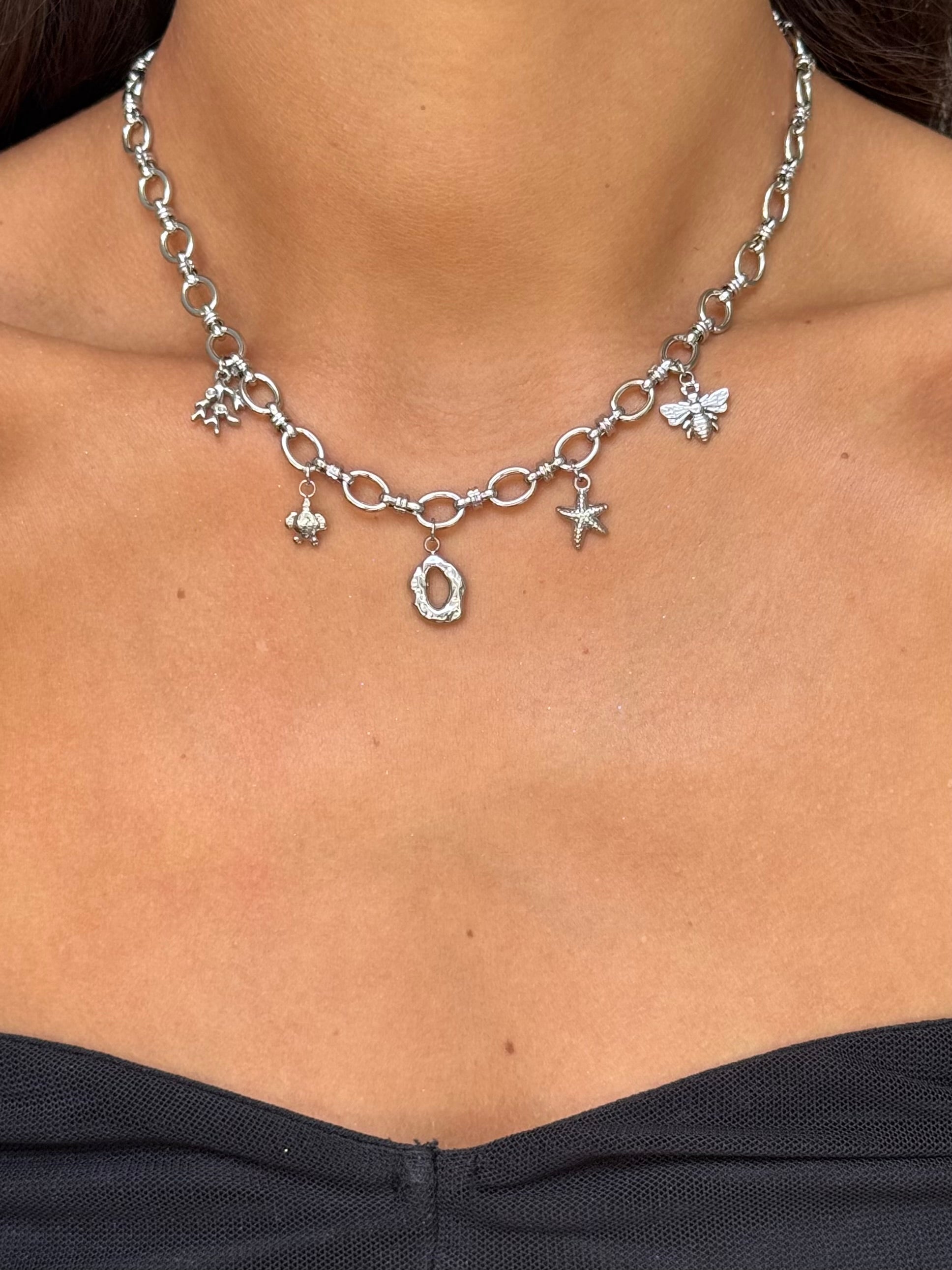 Ajoutez une touche symbolique et tendance à votre look avec ce collier orné de charms. Léger, délicat et facile à porter seul ou en accumulation, il apporte une dose de caractère à toutes vos tenues ✨