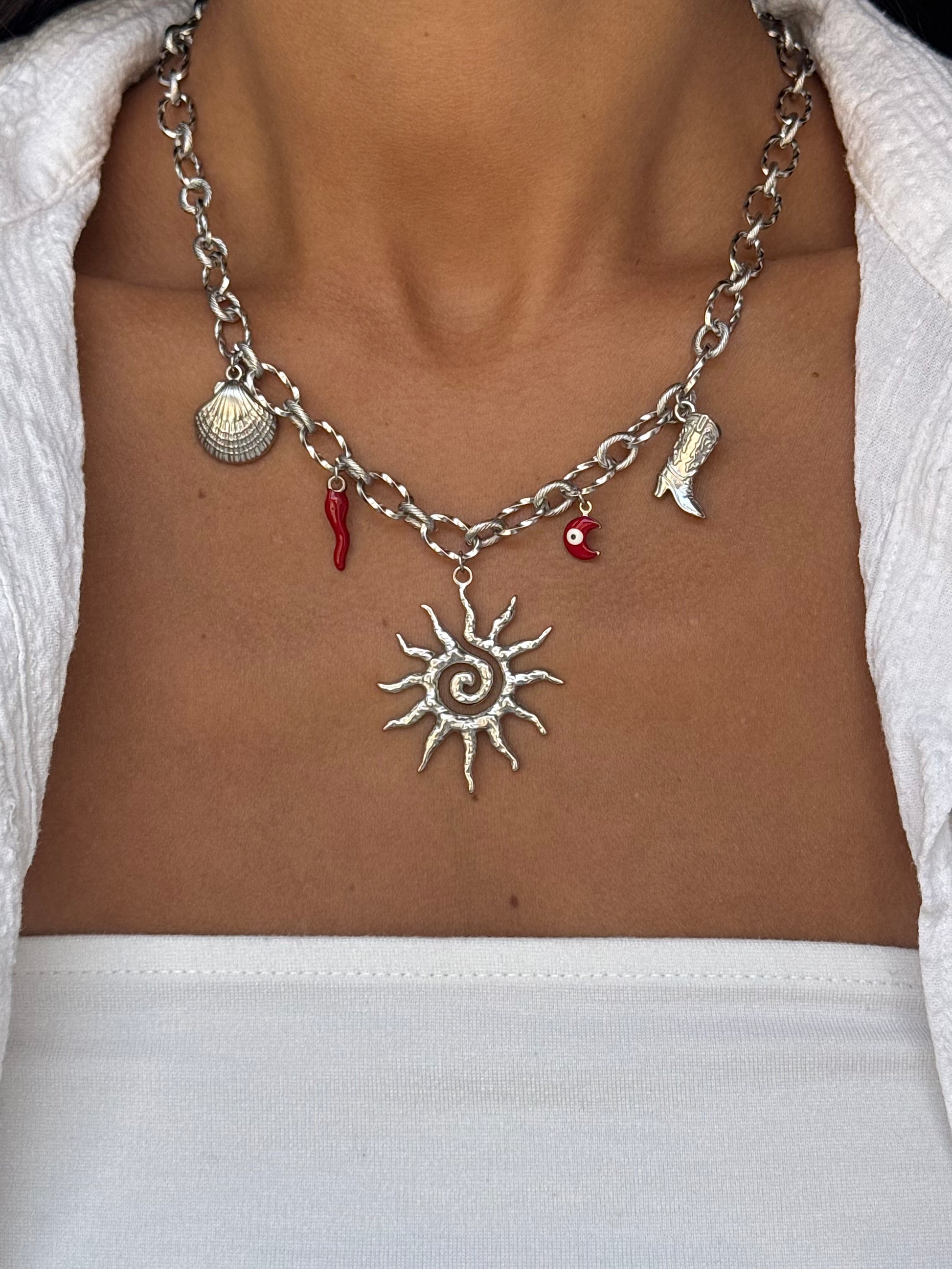 Ajoutez une touche symbolique et tendance à votre look avec ce collier orné de charms. Léger, délicat et facile à porter seul ou en accumulation, il apporte une dose de caractère à toutes vos tenues ✨