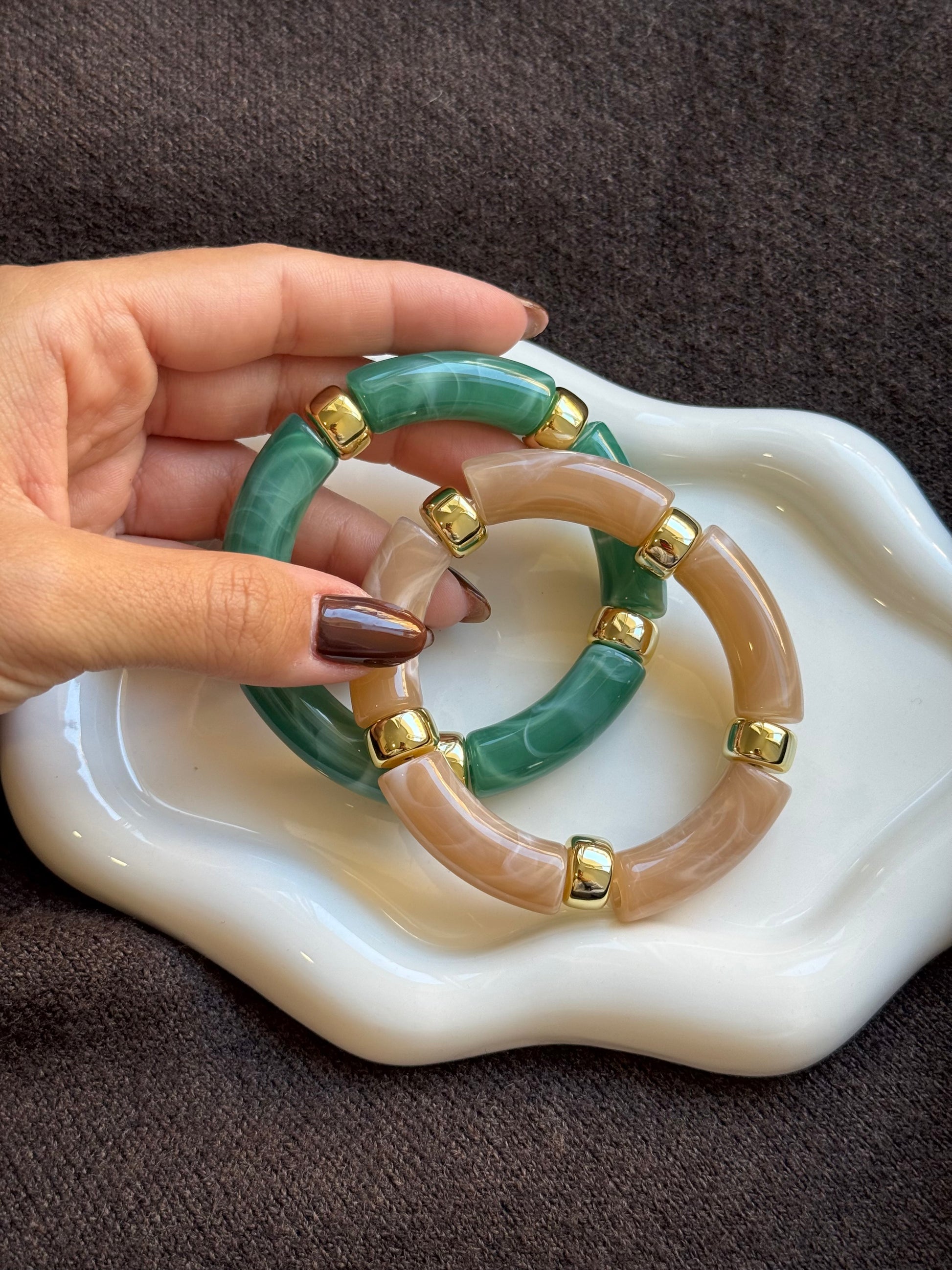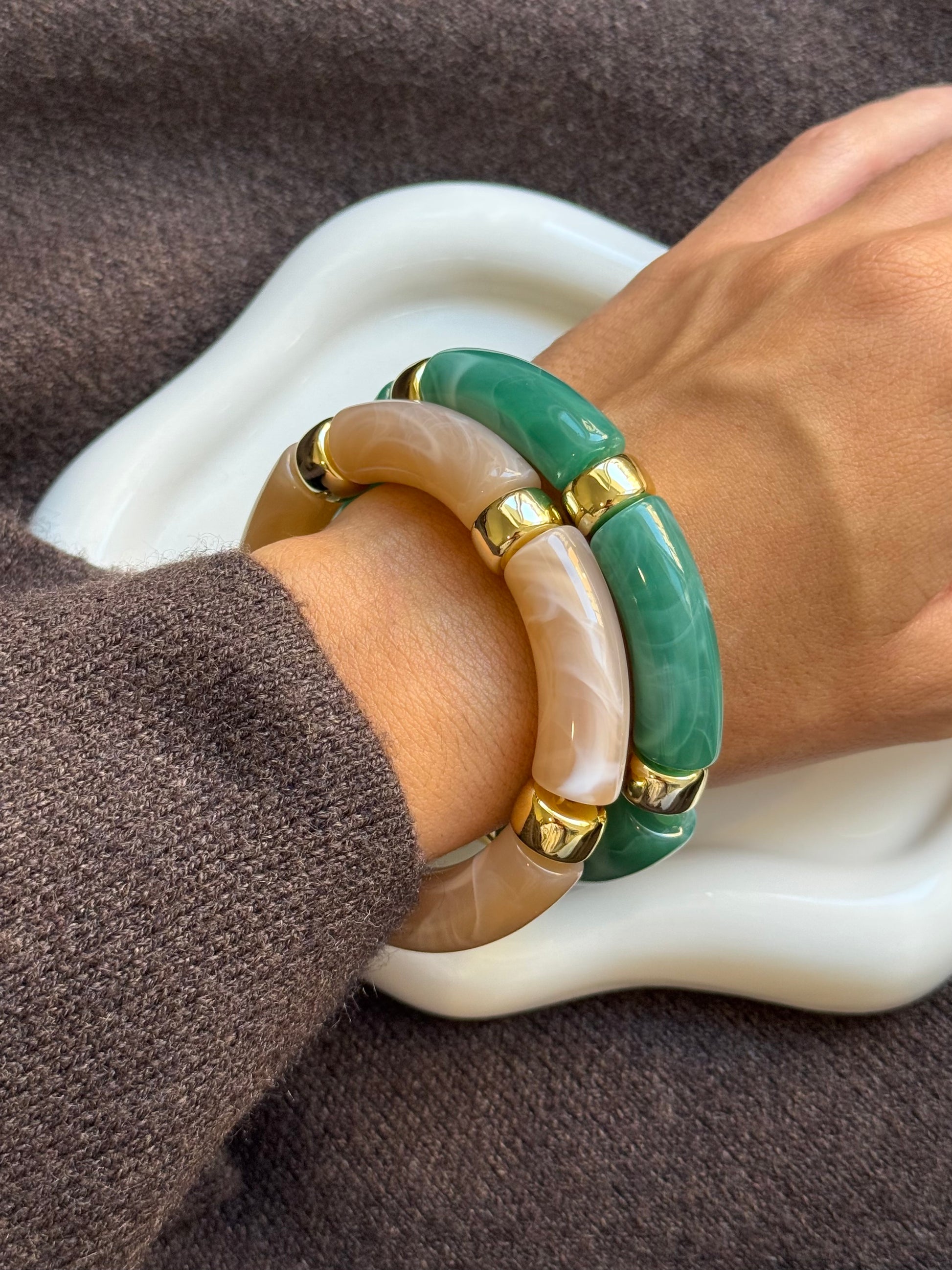 Jonc en résine, émail & bambou
